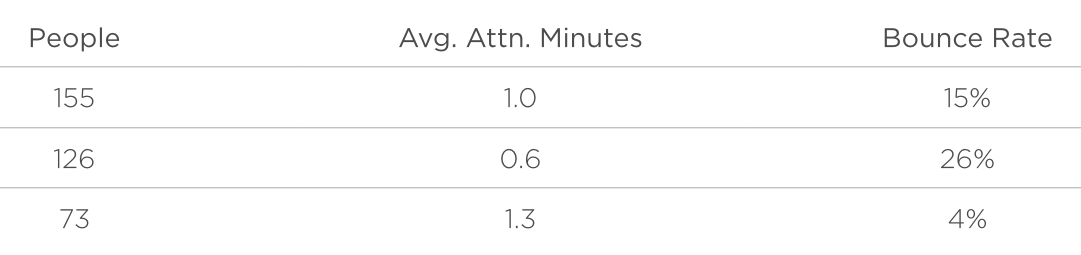 Avg attention minutes: how long on average people from those sources are spending consuming the content.