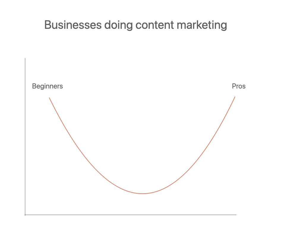 This has bi-furcated the market, with a lot of more experienced brands and a lot of beginners. As they were thrown head first into content. The distribution kind of looks like this graph below.