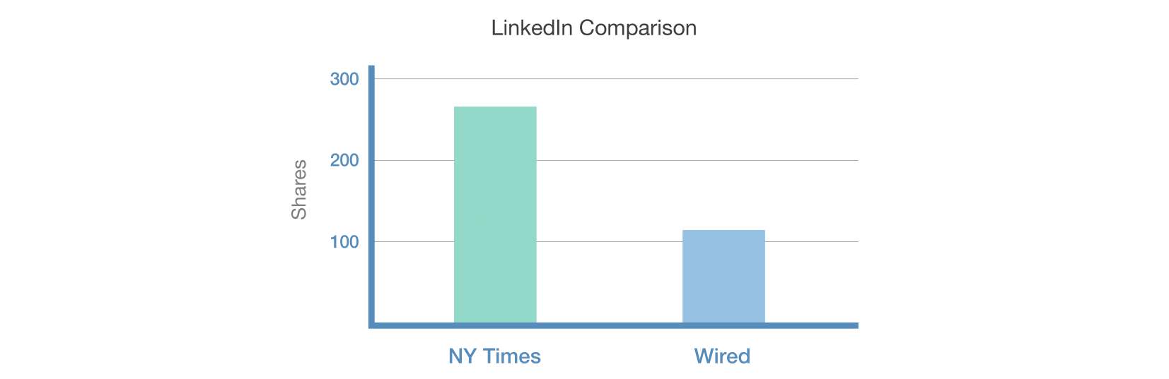 The New York Times had 2.5 times as many shares on LinkedIn. This was likely skewed by the industry response to the article and by industry insiders engaging in a conversation about the native ad itself since this was one of the first and most significant native ad placements in the Times.