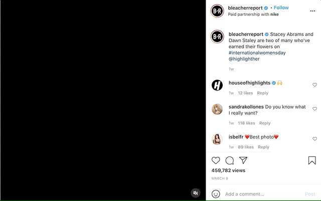 - Bleacher Report partnered with Nike to deliver this neat campaign on International Women’s Day.