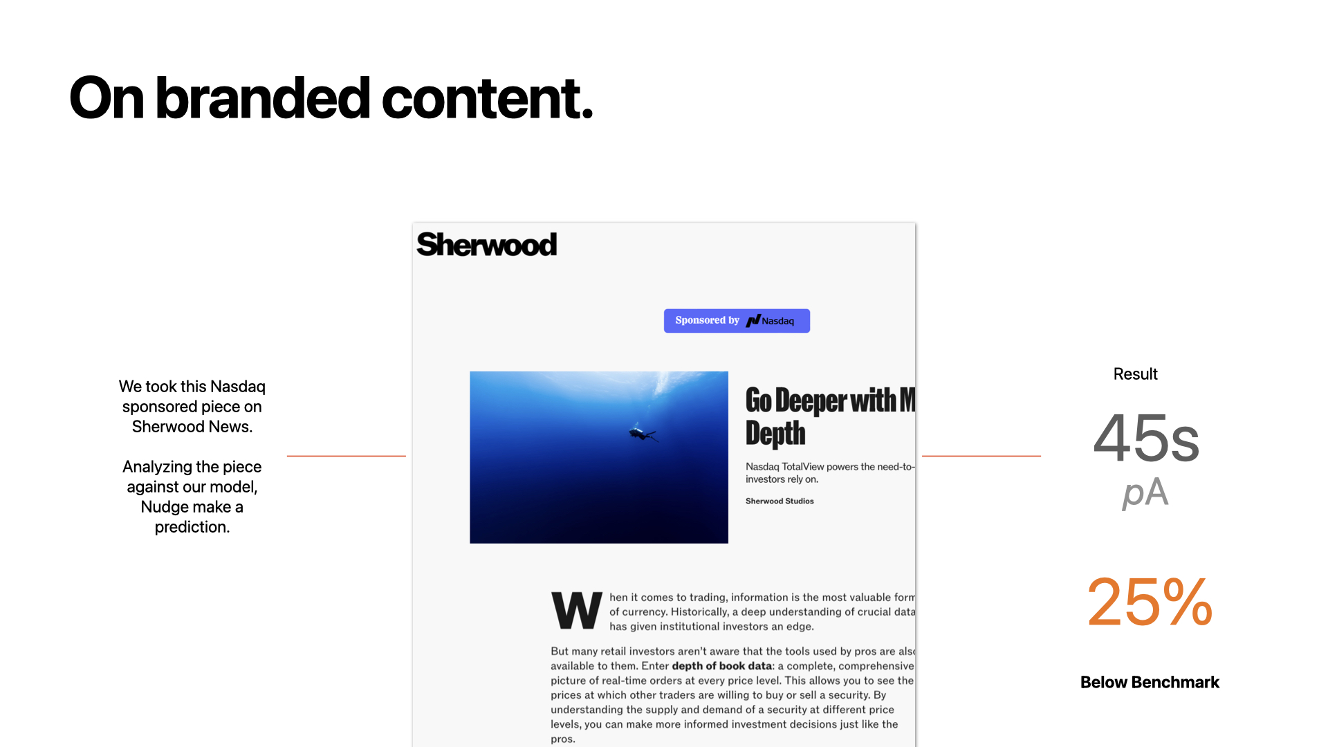Whether it’s on branded content, content marketing, earned media, emails or contextual placements, as long as it’s a page with content, we can model it.