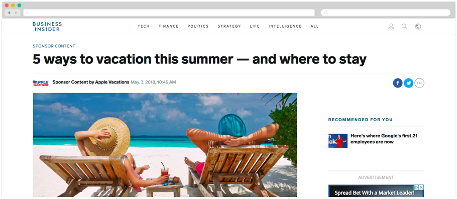 Apple Vacations on Business Insider: A nice list format, with a great story and tips. The article effectively elevates Apple Vacations brand throughout. Added bonus: the use of photos enhances the article as it paints a picture of what an Apple vacation is like.