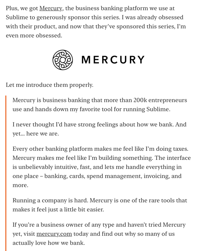 - Mercury sponsoring Sari Azout’s Whoa Vol 2.0 Conversation on AI x Creativity.